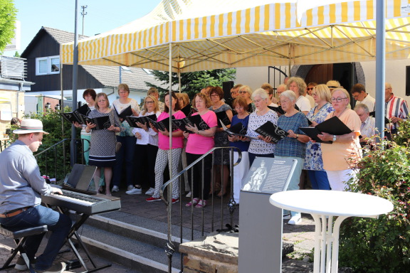 Mit einer Andacht durch Gemeindereferentin Dorothee Steinmann begann das Fest, begleitet von beiden Chören des MGV mit ihrem Chorleiter Hagen Anselm Fritzsche.